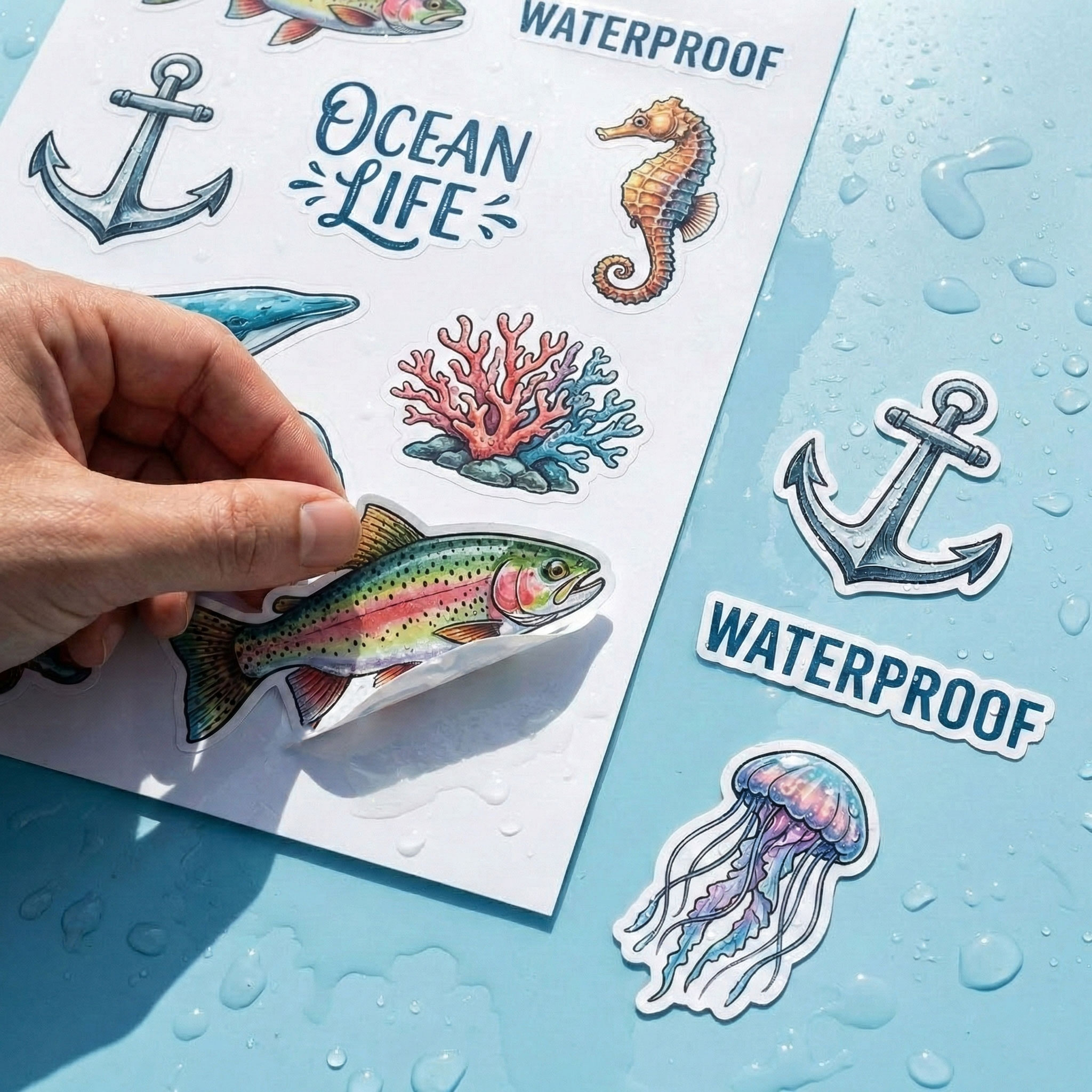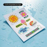 Coloca los stickers que deseas en una página en un área de corte de 11×17 pulgadas siguiendo la guia de montaje disponible abajo, en la descripción.